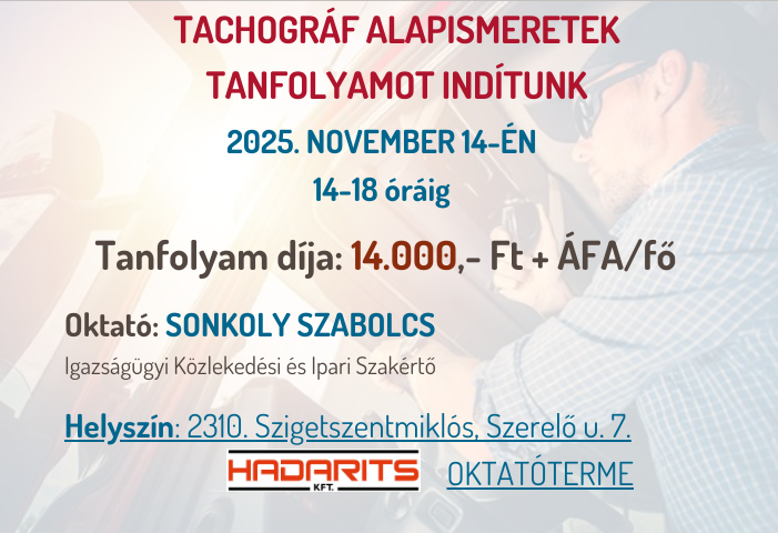 TACHOGRÁF KEZELŐI ALAPTANFOLYAMUNKAT AZOKNAK AZ ÜZEMBENTARTÓKNAK ÉS SOFŐRÖKNEK AJÁNLJUK, AKIK EDDIG NEM DOLGOZTAK TACHOGRÁFOS JÁRMŰVEKEN.
